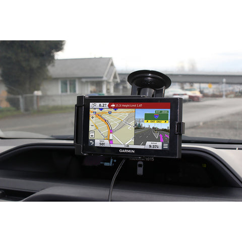 The Garmin nüviCam™ and d?zlCam™ keeps an extra eye on the road. And RAM Mounts custom cradle for these innovative devices keeps traffic information in your line of sight and keeps the device secure in your vehicle. The cradle allows for full range of motion of the device camera and integrates the factory Garmin magnetic dock for access to charging. The high-strength composite mount integrates a cable retention system to prevent accidental unplugging. The custom-fit cradle also has a locking option that is installed using press-fit nuts to enhance security. The cradle has two location options to attach the RAM ball (comes with 1" B-Size ball). Compatible with the Garmin nüviCam™ LMTHD and the Garmin d?zlCam™ LMTHD.