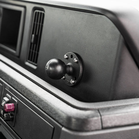 Meet your new go-to mount and component option for pairing any holder or dock with a dashboard drill-down mount. The RAM-202-225-2U consists of a 1.5" C size rubber ball connected to a 2.5" diameter round plate with the universal AMPS hole pattern and one 2.10” x 2.60” steel backing plate (hardware included). Connect a C size RAM® double socket arm and device holder that's perfect for your use-case. RAM®'s patented rubber ball and socket technology dampens shock and vibration and allows for near-infinite adjustment, enabling perfect viewing and operating angle of your device.