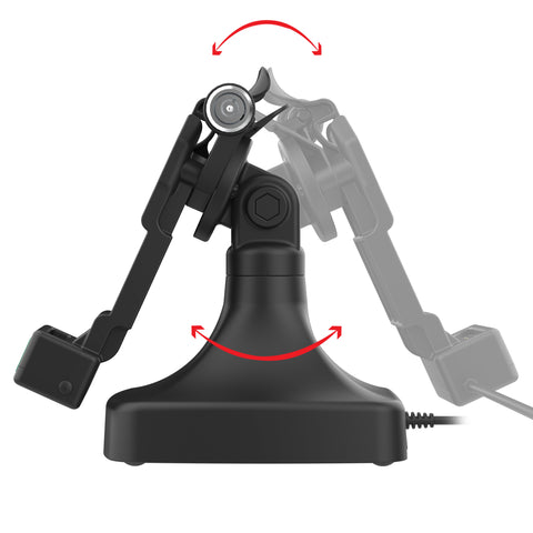 - Dock swivels 180 degrees and enables connected devices to tilt 180 degrees
