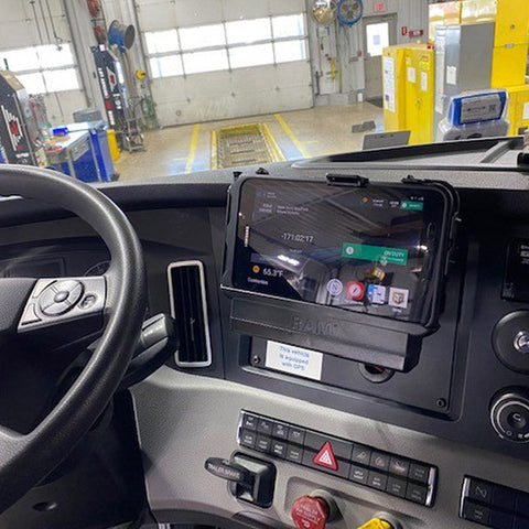 This powered dock for the Samsung Tab Active5, Tab Active3 and 2 retains all the same capabilities as the other RAM® EZ-Roll'r™ powered docks for the Tab Active5/3/2, with an added dual speaker integrated into the bottom of the dock for amplified audio while on the road. Power capabilities are provided to the device through pogo pins, and you can easily rotate the device for use in portrait or landscape mode. Additional cavity in the back of the dock allows room for the GDS® Hand-Stand™ and shoulder strap accessories. Access to the stylus remains while the device is docked. Included is a set of four nuts and bolts to connect the dock to any RAM® components containing the universal AMPS hole pattern.