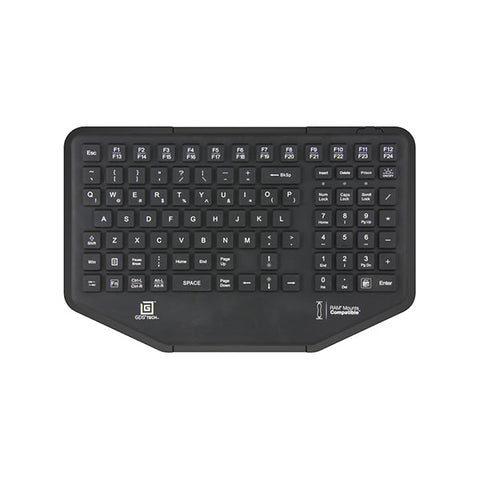 Complete your in-vehicle mobile office setup with this rugged GDS® Tech™ keyboard solution – featuring a 10-key numeric pad and USB cable. Integrated AMPS and VESA hole patterns make this keyboard RAM® Mounts Compatible™ with a wide variety of mounting components. In addition, slots on the top and bottom of the keyboard allow you to easily secure it using either the RAM® Tab-Tite™ dock or RAM® Tab-Lock™ dock.