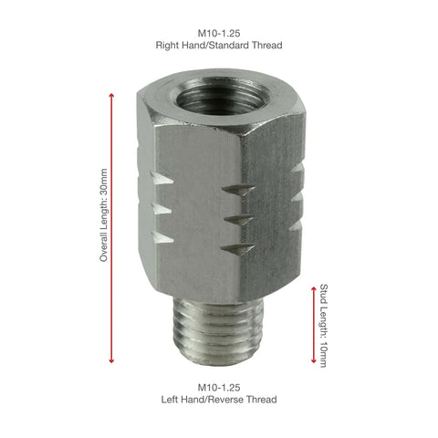 • THREAD PITCH : Female: M10-1.25 Right Hand/Standard Thread | Male: M10-1.25 Left Hand/Reverse Thread